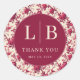 This is a vintage style image featuring an elegant floral pattern with rich red roses and delicate birds on a cream background. At the center, a deep maroon circle showcases the initials "L | B" in bold white letters, followed by a heartfelt "THANK YOU" message and the date "MAY 23, 2026." The composition exudes sophistication and warmth, making it perfect for expressing gratitude at weddings or special events. It inspires feelings of appreciation and timeless charm.