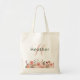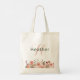 Elegant Floral Tote Bag. This beautiful design features dusty pink roses and dahlias, cream hydrangeas, and green and burgundy eucalyptus leaves. Personalize with the name and initial for a unique and stylish gift or a lovely keepsake for yourself.
