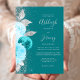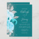 Elegant Floral Turquoise Silver Glitter Wedding Invitation
