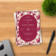 This is a vintage style image featuring an elegant wedding invitation set against a rich, floral background. The deep red roses and intricate patterns create a romantic and sophisticated atmosphere. The central oval frame in bold maroon highlights the names "Lauren and Benjamin" along with the wedding details, making it both eye-catching and easy to read. Perfect for couples who love classic designs and timeless beauty, this invitation sets the tone for a charming and memorable celebration.