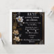 This luxurious wedding invitation design features a sophisticated black background adorned with delicate floral arrangements. The intricate white, gray, and golden flowers elegantly frame the invitation, creating a refined and timeless esthetic. The golden border adds a touch of opulence, making it perfect for high-end wedding décor and invitation displays. Ideal for cross-selling wedding accessories, stationery, and décor elements, this elegant design serves as a versatile template for wedding-themed items. Its classic yet modern floral motifs provide a stunning backdrop for personalized text, enhancing both wedding invitations and event decorations.
