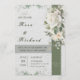 Celebrate your love story with this beautifully designed wedding invitation featuring soft white and green florals, a textured paper background, and symbolic illustrations of a dove and intertwined rings. This design evokes timeless romance and natural elegance, perfect for garden weddings, spring ceremonies, or classic celebrations with a modern twist.
