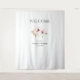 Welcome your guests in style with this elegant floral wedding welcome sign tapestry. Featuring soft watercolor flowers in blush and burgundy tones, minimalist typography, and personalized text with names and date, this beautiful backdrop adds a romantic and refined touch to your wedding entrance or photo area. Perfect for receptions, bridal showers, or engagement parties.