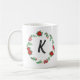 Elegant Floral Wreath Monogram Initial Christmas Coffee Mug