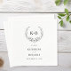 Easily personalize your wedding napkins with this editable design. Features minimal elegant typography design in black and white colour with custom monogram surrounded by a floral wreath illustration.