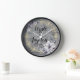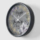 On this stylish wall clock is a rustic grey wood with an elegant chic gold flourish combined with a lavender floral wreath where you can personalize it creating romantic farmhouse elegance. Part of the Stylish Trendy Wedding Gifts Collection
