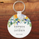 Elegant floral yellow white blue wedding keychain