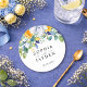 A radiant colourful wedding paper coasters with beautiful watercolor green botanical foliage and eucalyptus leaves and sunny elegant yellow white flowers. Add a charming touch to your wedding reception with this elegant floral yellow, white, and blue round paper coaster. Featuring a sophisticated design with delicate yellow blooms, soft white florals, and subtle blue accents, this coaster exudes romance and timeless beauty. The refined watercolor details and high-quality paper material make it both stylish and practical, perfect for protecting surfaces while enhancing your table décor. Ideal for spring and summer weddings, garden parties, or countryside celebrations, these beautifully designed coasters serve as a delightful detail for your special day.