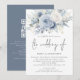 Elegant Florals QR Code Dusty Blue Wedding Invitation