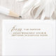 The Elegant Flourish Script Return Address Label is a refined and sophisticated choice for adding a touch of elegance to your holiday correspondence. This label features gold type on a crisp white background, showcasing a classic serif typeface complemented by a beautifully flourished script font that reads "from."