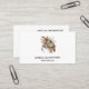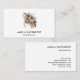 Business cards with a pretty bouquet of peach florals, surrounded by brownish bronze grasses and foliage with feather accents.