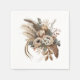 Paper napkins with a pretty bouquet of peach florals, surrounded by brownish bronze grasses and foliage with feather accents.