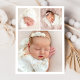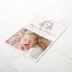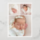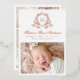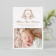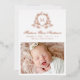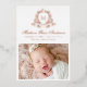 Celebrate your baby’s arrival with this elegant rose gold foil birth announcement card. The front features your baby’s monogram initial framed by a stunning rose gold foil floral crest on a white background. Your little one’s full name shines in coordinating rose gold foil calligraphy, with space below for birth stats, family name, and a horizontal newborn photo. The back showcases a matching three-photo collage, perfect for sharing more of your baby’s precious moments. Personalize with your baby’s details to create a luxurious keepsake for family and friends.