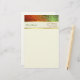 Lovely and professional looking letterhead style stationery paper done using the felt paper choice, with graphics of a gradient green to orange coloured foil, at the top. A cream coloured stripe, with gold tone borders sits under the foil decorative top. Green and brown text, on the stripe, is ready to personalize for yourself or your business or for your personal use.