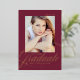 Celebrate your high school or college graduate’s achievement with this elegant photo graduation announcement, featuring a deep maroon background and "Graduate" in shimmering gold foil modern calligraphy. Personalize it with their senior photo, name, school, and graduation year for a unique and memorable touch. The back of the announcement features a stylish maroon and white trellis pattern, adding a sophisticated flair. Perfect for sharing this special milestone with family and friends, this custom graduation announcement blends modern elegance with timeless charm.