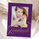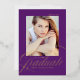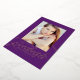Célébrez la réussite de votre diplôme d’études secondaires ou collégiales avec cet élégant faire-part de remise de diplômes photographiques, avec un riche arrière - plan violet et un "Graduate" dans la brillante feuille d’or de calligraphie moderne. Customisez-le avec leur photo, nom, école et année d'obtention du diplôme pour une touche personnelle. L'arrière présente un motif sophistiqué en treillis violet et blanc, ajoutant une touche intemporelle. Parfait pour partager cette étape spéciale en famille et entre amis, ce faire-part de graduation personnalisé allie élégance moderne et design classique.