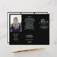 Modern and elegant, watercolor botanical foliage frame, black tri-fold brochure. Customizable text provides space for your product and services menu and prices, shop hours, contact info and more.