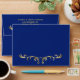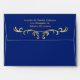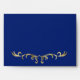 Elegant all-purpose envelope done in deep rich royal blue, with graphics of a gold ornamental swirl, on the front and on the back flap. Inside the envelope there is graphics of a gold on black feather pattern. Personalize the return address to suit your needs. Great for special occasion invites, thank you cards and announcements.