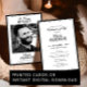 Elegant celebration of life invitation with photo memorial layout and classic black and white typography creates a timeless and respectful design ideal for honoring a loved one with dignity and grace. This refined design features a structured, formal layout with a subtle double border frame and a balanced combination of flowing script and traditional serif fonts, delivering a sophisticated and traditional aesthetic suitable for funeral services and memorial gatherings. The inclusion of a dedicated photo area on the back with a custom message like 'In loving memory" and your loved one's name and dates of life adds a personal and meaningful touch, giving recipients a memorial card they can frame, while the clean typography ensures all service details are presented clearly and professionally. The monochrome color palette enhances readability and provides a calm, understated tone that works beautifully for both modern and traditional celebrations of life. Designed for those seeking a formal memorial invitation with photo and elegant styling, this layout offers a polished and heartfelt way to communicate service details while creating a lasting tribute that reflects respect, remembrance, and timeless simplicity. Available as printed cards or an instant digital download.