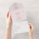 An improved version of the tri-fold invitation now with a tear-off rsvp section. Enjoy a simple minimalist design in dusty rose combined with an elegant calligraphy typography and a formal text, for a classic timeless look. This all-in-one sustainable invitation would save you money, no need to include RSVP envelopes, your guests will tear away the last panel and mail it back to you as a postcard.
