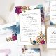Delight your guests with this elegant and striking Wedding invitation with beautiful watercolor and ink stains flowing behind your details creating a delicate celestial scene. Exquisite corner floral embellishments framing invitation. Wording with parents names. Watercolor stains, Foliage and flowers in both front and back in a creative blend of purple, fuchsia, magenta, teal, turquoise, blue, navy, mustard, golden yellows and green hues. Part of our "Mystic Garden" Collection with a variety of coordinating products available. Visit the entire collection at: https://www.zazzle.com/collections/mystic_garden_celestial_collection-119823869554047930