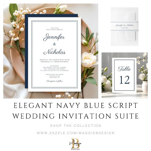 Elegant Navy Blue Script Wedding Invitation SuiteDesigned by Maggie B Design