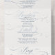 An improved version of the tri-fold invitation now with a tear-off rsvp section. Enjoy a simple minimalist design in navy blue combined with an elegant calligraphy typography and a formal text, for a classic timeless look. This all-in-one sustainable invitation would save you money, no need to include RSVP envelopes, your guests will tear away the last panel and mail it back to you as a postcard.