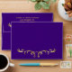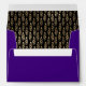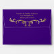 Elegant all-purpose envelope done in rich purple , with graphics of a gold ornamental swirl, on the front and on the back flap. Inside the envelope there is graphics of a gold on black feather pattern. Personalize the return address to suit your needs. Great for special occasion invites, thank you cards and announcements.