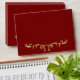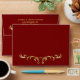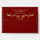 Elegant all-purpose envelope done in deep red, with graphics of a gold ornamental swirl, on the front and on the back flap. Inside the envelope there is graphics of a gold on black feather pattern. Personalize the return address to suit your needs. Great for special occasion invites, thank you cards and announcements.
