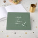 A beautiful elegant formal script typography wedding design with a sage olive green background colour. A unique design that uses a personal classic calligraphy wedding invitation font and a hand drawn greenery leaf branch. A formal script calligraphy design with tones of sage olive green. An elegant wedding guest book design with classic traditional elements. Matching wedding invitations and other stationery items are also available.