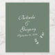 A beautiful elegant formal script typography wedding design with a sage olive green background colour. A unique design that uses a personal classic calligraphy wedding invitation font and a hand drawn greenery leaf branch. A formal script calligraphy design with tones of sage olive green. An elegant wedding wine label design with classic traditional elements. Matching wedding invitations and other stationery items are also available.