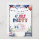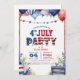 At the heart of the design lies the iconic American flag, seamlessly incorporated into the letters spelling out "party." This subtle yet impactful detail pays homage to the spirit of freedom and unity that defines this special occasion. Whether you're hosting a backyard barbecue or a sophisticated soirée, our invitation sets the stage for an unforgettable Fourth of July celebration.
