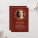 A formal and very elegant invitation for your confirmation celebration. The dark red background has abstract swirls and a gold, round photo window.