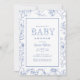 Introducing our exquisite baby shower invitation adorned with delicate blue flowers and graceful leaves, a true embodiment of elegance and sophistication. Crafted with meticulous attention to detail, this enchanting invitation captures the essence of joy and celebration, making it the perfect choice for welcoming a precious new life into the world. The gentle hues of blue symbolize tranquillity and serenity, while the intricate floral design adds a touch of natural beauty. With its luxurious appeal, this invitation is sure to leave a lasting impression on your guests, setting the tone for a memorable and enchanting baby shower.