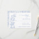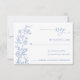 Elegant French Dusty Blue Vintage Wedding RSVP. This invitation has a soft, elegant style with a white background and delicate blue flowers that feel calming and timeless. The fonts mix classic serif with flowing script, giving it a balance of formality and warmth. Delicate blue floral illustrations along the left add a touch of whimsy and nature-inspired charm. Overall, the design feels romantic yet understated, perfect for a modern but traditional wedding.