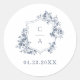 Elegant French Roses Blue Botanical Crest Envelope Classic Round Sticker