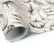 This custom Friendsgiving wrapping paper showcases hand-illustrated designs by Nathalie Portet, featuring a Fall harvest scene of pumpkins, squashes, acorns and autumn foliage illustrated in black ink against an elegant cream background. A circular frame features a "Happy Friendsgiving" Greeting plus the festive words, "Grateful, Thankful, Blessed".