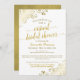 Even when you can't be together, you can still celebrate together. So if you can't have a bridal shower in person, why not take it online? This beautiful invitation features a gold and white theme with frilly faux foil corners and lacy script calligraphy.