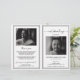 Funeral memorial program featuring on the front a photo of the deceased, thier name, dates, the memorial venue, date of the event, and elegant frame. On the inside is an obituary, and order of service; and on the back another photo, a thank you note and the second venue for after the funeral.