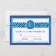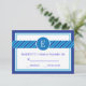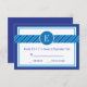 This elegant yet modern RSVP card is ideal to celebrate a Bar Mitzvah with style and class. It features a border in several shades of blue colour, a stripes border across the card and a circle with the name initial. Classy design that is trendy and eye catching. Add your own wording and event details.