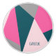 Modern geometric design in pink, grey and green colours.