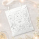 This design features an elegant black and white geometric pattern. The geometric pattern background creates the perfect backdrop for the wedding details. The combination of the black and white colours create a sophisticated, trendy and chic style. Elegant wedding favour bag design with modern elements. The modern setup of the typography gives it a distinct style. Matching wedding invitations and other stationery items are also available.
