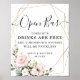 Elegant geometric shape in faux gold with pink blush bouquet with script open bar and classic typography for wedding sign.