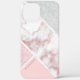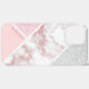 Stylish geometric iPhone case. Modern combination of faux rose gold glitter marble texture, pink, silver and rose gold faux glitter colour block. Add your name or any other text.