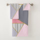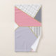 Modern and girly geometric combination of black polka dots, stripes, pastel grey, pink and purple colour block.