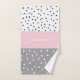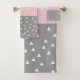 Elegant geometric triangles & dots in grey & pink bath towel set