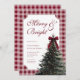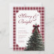 Elegant Gingham Red Bow Christmas Dinner Party Invitation.
