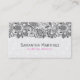 Elegant grey girly floral lace over white floral damasks, customizable business card. Touch of pink. If you need any help customizing any of my designs, contact ArtOnWear designer. Free text formatting with live help available by request.