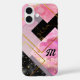 Elevate your style with this modern monogram iPhone case featuring a dazzling pink black geometric design. Perfect for adding a touch of glam to your everyday look!