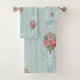 Elegant Girly Pink Roses on Mint Background Bath Towel Set